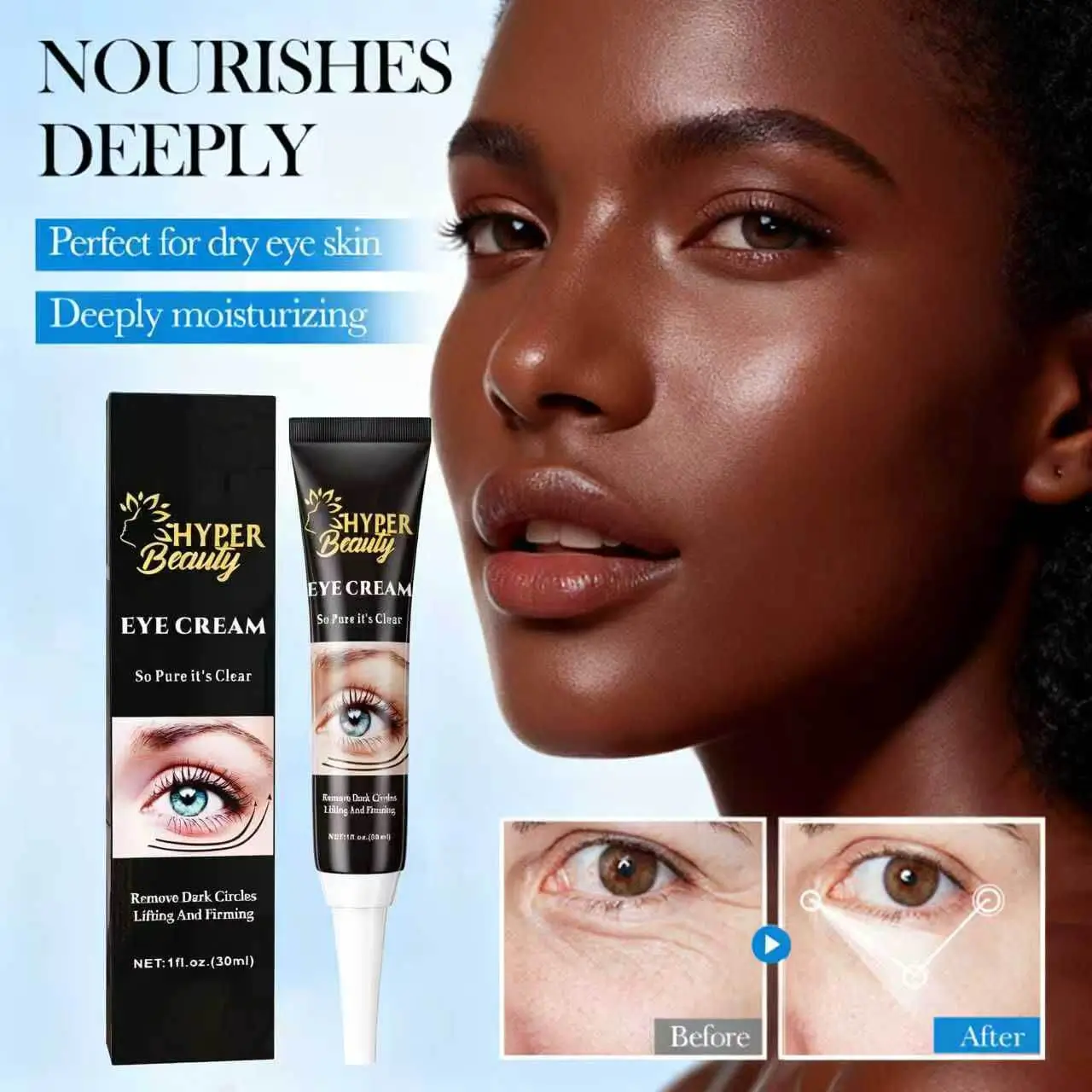 Revitalize tired eyes with Hyper Beauty Eye Cream, your all-in-one solution for a smoother, firmer, and more radiant under-eye area. Infused with hyaluronic acid, caffeine, peptides, and vitamin C, this luxurious formula deeply hydrates while reducing the appearance of dark circles, puffiness, and fine lines.
